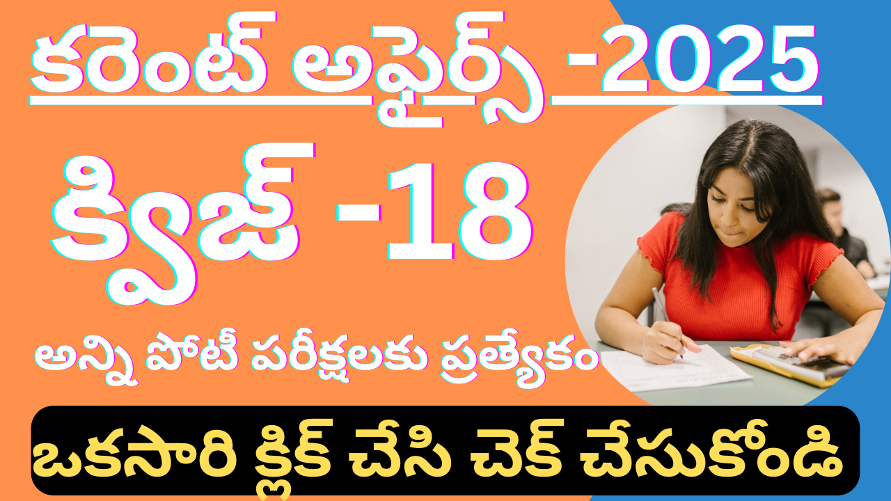 Daily Current Affairs Quiz-18 (31-08-2025) September 2, 2025 by master 58 Daily Current Affairs-2025 Quiz-(18) 1 / 17 ఇటీవల సుప్రీంకోర్టు న్యాయమూర్తులుగా ప్రమాణ స్వీకారం చేసిన వారు ఎవరు? A) జస్టిస్ అలోక్ ఆరాధే & జస్టిస్ విపుల్ మనుభాయ్ పంచోలి B) జస్టిస్ బి.వి. నాగరత్న & జస్టిస్ సూర్యకాంత్ C) జస్టిస్ దీపక్ మిశ్రా & జస్టిస్ ఆర్.బనుమతి D) జస్టిస్ సంజయ్ కిశన్ కౌల్ & జస్టిస్ ఇంద్రజీత్ మహాంతి జస్టిస్ అలోక్ ఆరాధే & జస్టిస్ విపుల్ మనుభాయ్ పంచోలి. వీరు భారత సుప్రీంకోర్టులో నూతన జడ్జిలుగా ప్రమాణ స్వీకారం చేశారు 2 / 17 కేంద్ర ప్రభుత్వ ఆర్థిక లోటు డేటా ఏ సంస్థ విడుదల చేస్తుంది? A) RBI B) నితి ఆయోగ్ C) కంట్రోలర్ జనరల్ ఆఫ్ అకౌంట్స్ (CGA) D) ఫైనాన్స్ కమిషన్ కంట్రోలర్ జనరల్ ఆఫ్ అకౌంట్స్ (CGA) CGA ఈ డేటాను 2025 ఆగస్టు 29న విడుదల చేసింది. 3 / 17 State Energy Efficiency Index (SEEI) 2024 ను విడుదల చేసిన శాఖ ఏది? A) నితి ఆయోగ్ B) విద్యుత్ మంత్రిత్వ శాఖ C) పర్యావరణ మంత్రిత్వ శాఖ D) పరిశ్రమ మంత్రిత్వ శాఖ ఈ సూచిక రాష్ట్రాల ఇంధన వినియోగం మరియు సామర్థ్యాన్ని అంచనా వేయడానికి విద్యుత్ మంత్రిత్వ శాఖ విడుదల చేసింది. 4 / 17 భారత్ బిల్డ్ కాన్ 2026 వాణిజ్య ప్రదర్శన ఎప్పుడు జరగనుంది? A) జనవరి 2026 B) ఫిబ్రవరి 2026 C) ఏప్రిల్ 29 నుండి మే 2, 2026 D) జూన్ 2026 ఏప్రిల్ 29 నుండి మే 2, 2026 ఈ ప్రదర్శన న్యూఢిల్లీలో 2026 ఏప్రిల్ 29 – మే 2 వరకు జరుగుతుంది. 5 / 17 SEEI 2024లో అగ్రస్థానంలో నిలిచిన రాష్ట్రాలు ఏవి? A) కేరళ, తమిళనాడు, పంజాబ్, ఢిల్లీ B) మహారాష్ట్ర, ఆంధ్రప్రదేశ్, అస్సాం, త్రిపుర C) గుజరాత్, హర్యానా, ఒడిశా, కర్ణాటక D) బీహార్, మధ్యప్రదేశ్, నాగాలాండ్, మిజోరం మహారాష్ట్ర, ఆంధ్రప్రదేశ్, అస్సాం, త్రిపుర ఈ నాలుగు రాష్ట్రాలు 2024 SEEIలో అగ్రస్థానంలో నిలిచాయి. 6 / 17 2025 రామన్ మెగసెసే అవార్డును గెలుచుకున్న భారతీయ సంస్థ ఏది? A) స్మైల్ ఫౌండేషన్ B) ప్రథం ఎడ్యుకేషన్ ట్రస్ట్ C) ఎడ్యుకేట్ గర్ల్స్ (Educate Girls) D) అక్షయపాత్ర ఫౌండేషన్ ఎడ్యుకేట్ గర్ల్స్ (Educate Girls):- గ్రామీణ బాలికల విద్య కోసం కృషి చేస్తున్న Educate Girls NGO ప్రతిష్టాత్మక రామన్ మెగసెసే అవార్డు 2025 పొందింది. ఈ సంస్థను సఫీనా హుస్సైన్ 2007లో రాజస్థాన్లో ప్రారంభించారు. 7 / 17 మహిళా సాధికారత విభాగంలో 2022-23 SCOPE Eminence Award పొందిన సంస్థ ఏది? A) BHEL B) గోవా షిప్యార్డ్ లిమిటెడ్ (GSL) C) ONGC D) HAL లింగ సమానత్వం మరియు సమ్మిళిత కార్యాలయ విధానాలలో చేసిన కృషికి గాను GSL ఈ అవార్డును పొందింది. 8 / 17 రాబోయే ప్రపంచ పారా అథ్లెటిక్స్ ఛాంపియన్షిప్ ఎక్కడ జరగనుంది? A) ముంబై B) బెంగళూరు C) న్యూఢిల్లీ D) హైదరాబాద్ ఈ టోర్నమెంట్ జవహర్లాల్ నెహ్రూ స్టేడియం, న్యూఢిల్లీలో జరుగుతుంది. 9 / 17 మేళా పట్ ఉత్సవం ఏ రాష్ట్రం/కేంద్ర పాలిత ప్రాంతంలో జరుపుకుంటారు? A) హిమాచల్ ప్రదేశ్ B) ఉత్తరాఖండ్ C) జమ్మూ కాశ్మీర్ D) లడఖ్ ఈ ఉత్సవం జమ్మూ కాశ్మీర్లోని దోడా జిల్లా, భదేర్వాలో జరుపుకుంటారు. 10 / 17 కొత్తగా ఏర్పడిన AI మరియు సేవల పరివర్తన విభ