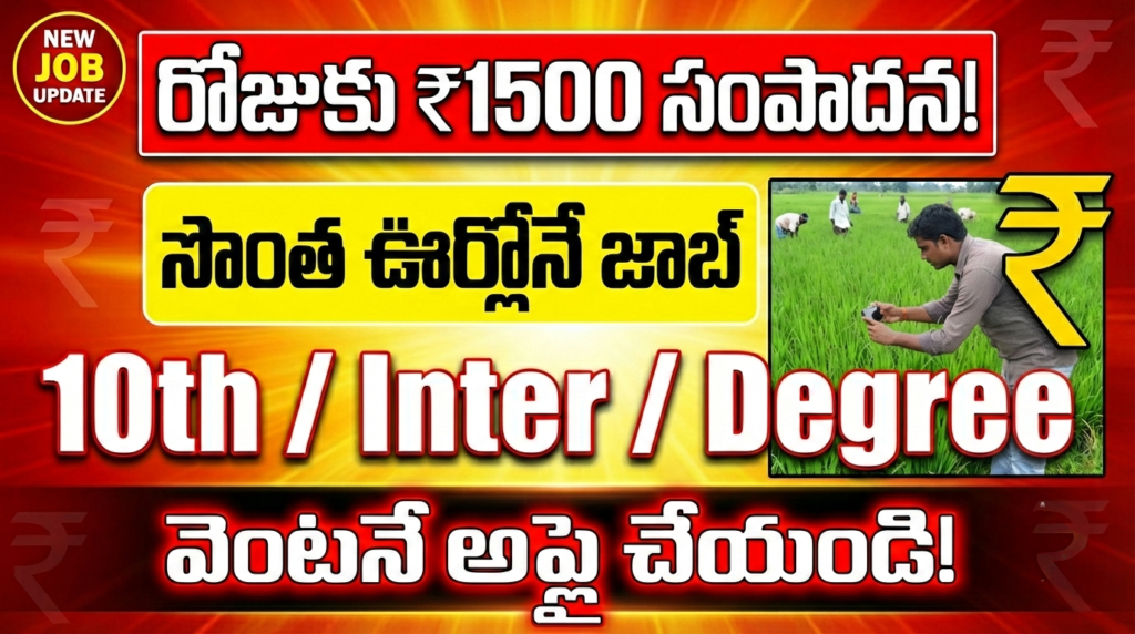 తెలంగాణలోని నిరుద్యోగ యువతకు రాష్ట్ర వ్యవసాయ శాఖ (Agriculture Department) శుభవార్త తెలిపింది. 2025-26 యాసంగి సీజన్కు సంబంధించి పంటల వివరాలను నమోదు చేసేందుకు భారీగా ‘డిజిటల్ క్రాప్ సర్వే (Digital Crop Survey)’ని నిర్వహిస్తోంది. ఇందుకోసం రాష్ట్రవ్యాప్తంగా ప్రతి గ్రామానికి ఒకరు చొప్పున సుమారు 10,909 మంది ప్రైవేట్ సర్వేయర్లు లేదా వాలంటీర్లను నియమించుకోవాలని నిర్ణయించింది. మీ సొంత ఊర్లోనే ఉంటూ, చేతి నిండా పని మరియు మంచి ఆదాయం పొందే అద్భుత అవకాశం ఇది. దీనికి సంబంధించిన అర్హతలు, జీతం, మరియు అప్లికేషన్ ప్రాసెస్ పూర్తి వివరాలు ఈ ఆర్టికల్ లో తెలుసుకోండి.